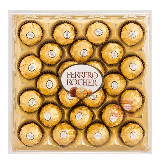 Caja con 24 piezas chocolates marca Ferrero Rocher.