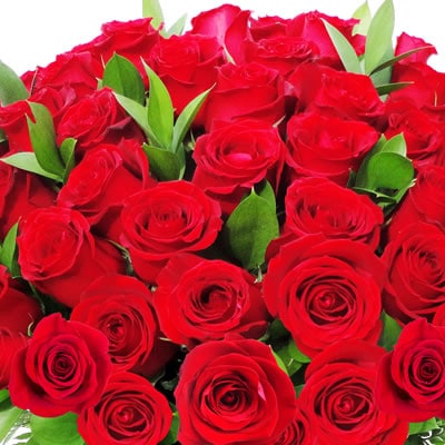 Diseño en florero de 100 rosas rojas, follajes finos y moño. Altura aproximada 60 – 70 cm.