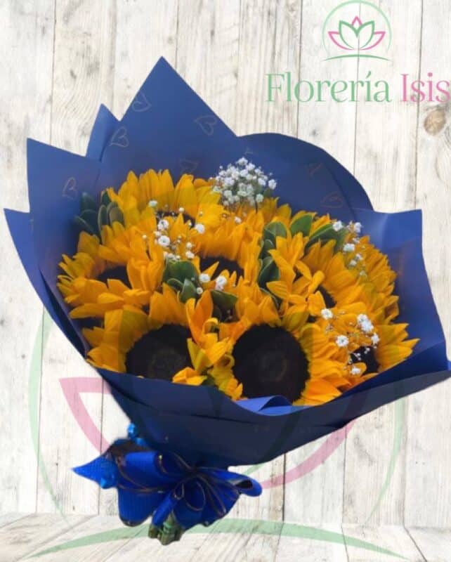Regala un hermoso ramo de 10 Girasoles con follaje y nube.